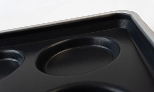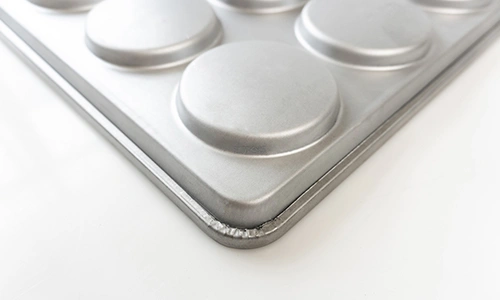 صنعت الصينية من الفولاذ المطلي بالألومنيوم بتقنية السحب العميق، وتتميز بسطح أملس سهل التنظيف بدون زوايا. تتميز قوالب الخبز بقاعدة ناعمة ومنحنية (مع خيارات إضافية للأقواس) لزيادة مساحة التلامس، مما يضمن خبز مسطحًا ومتجانس الشكل ومقاومًا للتشوه. تتوفر خيارات طلاء مانع للالتصاق عالية الأداء، بما في ذلك طلاء PFA عالي الأداء (يتحمل حوالي 3000 دورة) وطلاء التفلون الاقتصادي (يتحمل حوالي 1500 دورة)، لضمان سهولة إخراج الطعام ومظهر نهائي ممتاز.